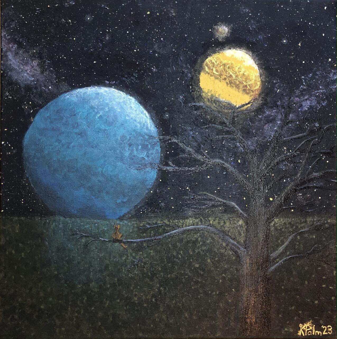 Karin Palmi pintsli alt siia maailma on manifesteerunud maalid. Kunst pakub hingele kosutust ja selle loomine nii pintsiliga kui digitaalselt kingib hoomamatut rõõmu ja rahulolu. Maalimine, erinevalt digitaalsest loominguprotsessist, on pigem nagu meditatsioon, puhas keskendunud Olemine - see, mida kõigil vaja on siin tohutu tormamise keskel. Avastamisrõõmu selles meeletu kiirusega muutuvas maailmas jagub. Oluline on leida oma enese seest rahu, mis oskab ka kõige tormilisematel päevadel vaatlejaks jääda. Maalimine ja kunsti vaatlemine on kindlasti osa sellistest tegevustest, mis aitavad seda sisemist rahulolu luua.