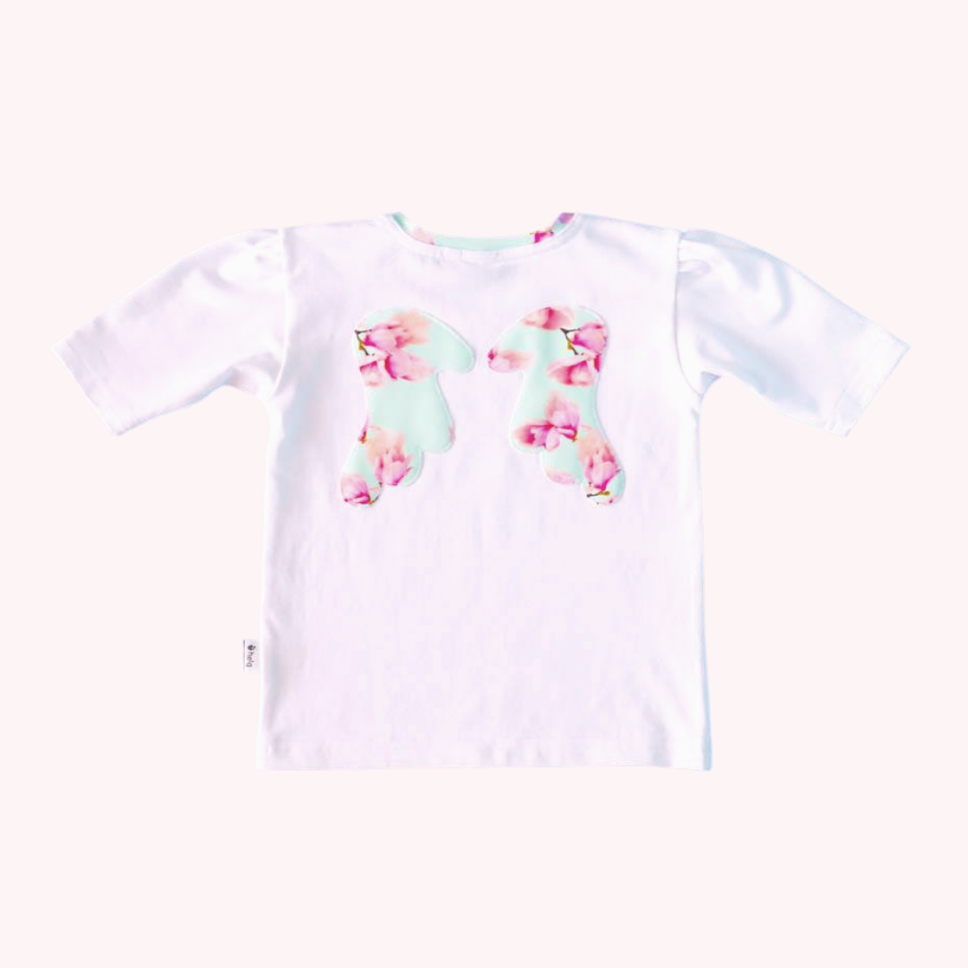 WELCOME! Here is the manifestation of some of our dreams: clothes with angel wings! The creator of the brand Wings by Palms Art, Karin Palm, designed especially bright and cheerful pink magnolia fabric and design clothes with angel wings, so that the new collection in collaboration with Helg children's clothing brand could bring more joy to you and your family.