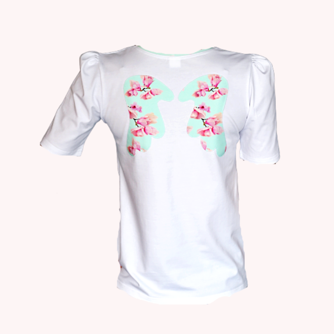 Pehmest puuvillast kauni lõikega naiste t-särk hoiab keskkohast natuke laiemalt, et saaks soovi korral oma naiselikke kumerusi varjata. Tavalisest väheke pikem lõige hoiab keha soojema ka jahedamatel päevadel, et selga külma eest kaitsta, kui lastega tegeledes on vaja kummardada ja kükitada. Õrnalt puhvis käise lõige ja grammike pikem varrukas lisab naiselikkust ja õhulisust ingellikuks olemiseks.