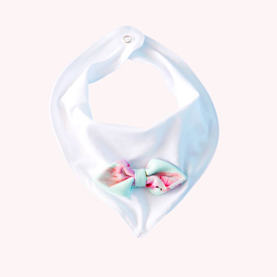This little apron/scarf can protect baby from a little breeze as well as from some food stains, taking the first attack on the white Angel Wings Baby Bodysuit.